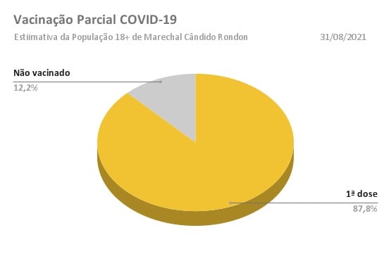 A Secretaria de Saúde de Marechal Rondon divulgou nesta quarta-feira, dia 1º, um balanço da vacinação contra a Covid-19. Os dados foram contabilizados até terça-feira, dia 31 de agosto. Até o momento, 87,8% do público-alvo já foi imunizado com a primeira dose. Tal porcentagem representa que 35.209 pessoas já foram vacinadas, das 40.101 aptas, que são aquelas com 18 anos ou mais.