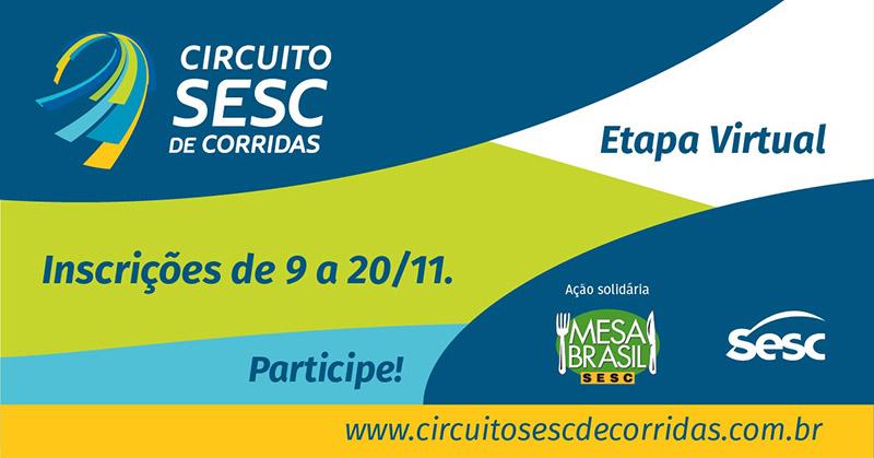 Estão abertas as inscrições para a etapa virtual do Circuito Sesc de Corridas/2020. Os participantes vão escolher o local, o trajeto e o horário para correr, evitando aglomerações e cumprindo as recomendações dos órgãos de saúde diante da pandemia de Covid-19.