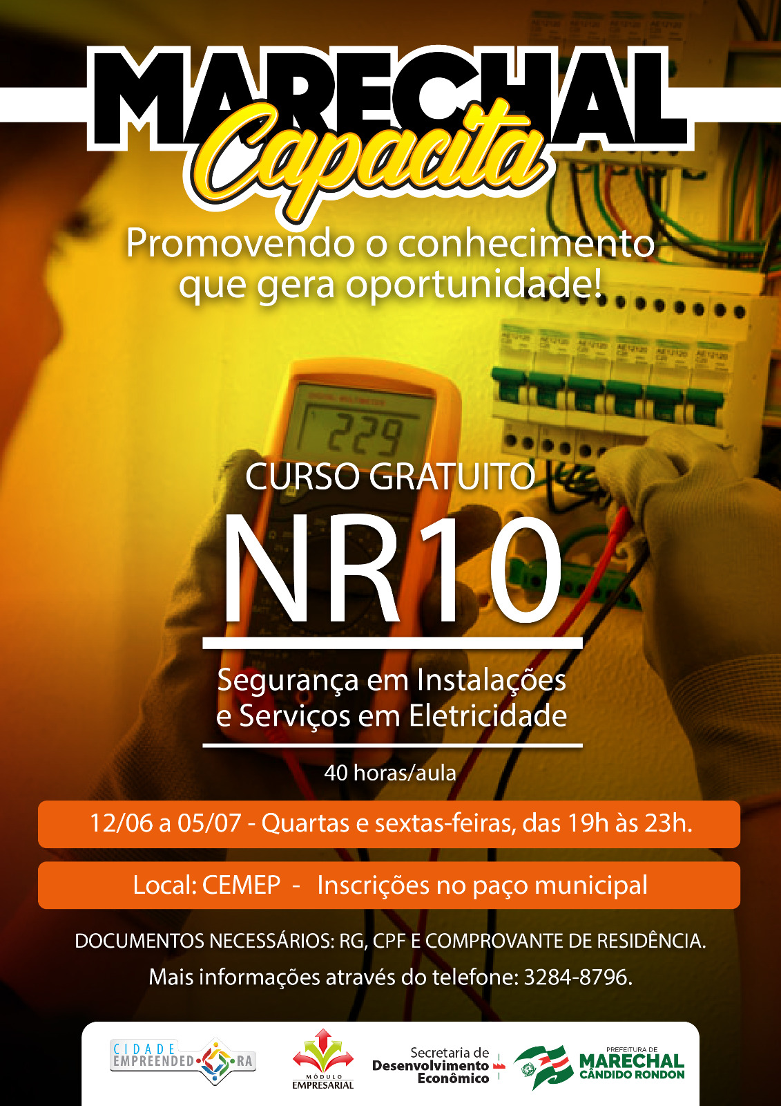 A prefeitura de Marechal Cândido Rondon, através da Secretaria de Desenvolvimento Econômico, abriu inscrições para o curso NR10 – Segurança em Instalações e Serviços com Eletricidade.