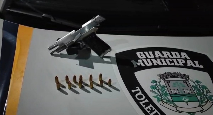 Uma ação da Guarda Municipal (GM) de Toledo resultou na apreensão de uma pistola calibre 09 mm e na prisão de um homem por porte ilegal de arma de fogo na madrugada deste domingo (09). O caso ocorreu por volta das 03h30, na Rua Ricardo Refatti, próximo ao cruzamento com a Rua Waldemar Turatti, durante patrulhamento de rotina.