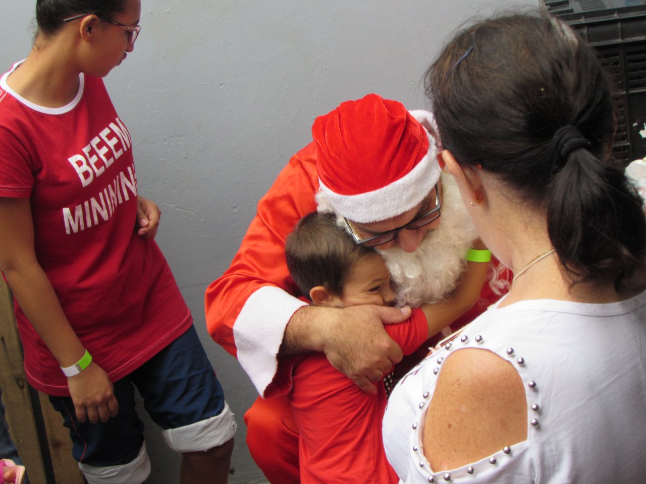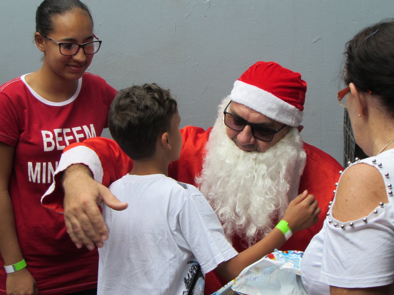 Ao final do evento, as crianças receberam presentes com a visita surpresa do Papai Noel.