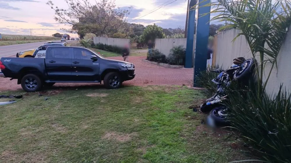 A colisão envolveu uma motocicleta Yamaha MT09, placa de Toledo e uma caminhonete Toyota Hilux.