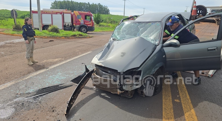 Acidente no trevo de Novo Horizonte deixa três pessoas feridas