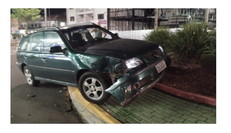 O condutor de uma Parati, com placas de Marechal Rondon, contou que fazia a rotatória quando foi fechado por um automóvel FORD EDGE, sendo que após a colisão, subiu o canteiro da rotatória.