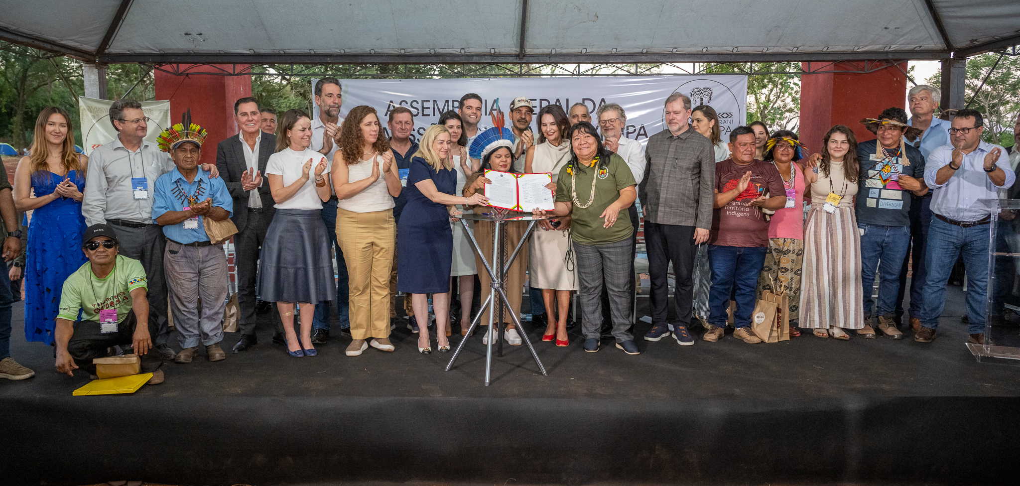 A cerimônia aconteceu em Itaipulândia (PR), na Escola Estadual Indígena Arandu Renda, na Aldeia Atimirim, no início da Assembleia Geral da Comissão Guarani Yvyrupa. Participaram do evento lideranças indígenas, ministros de Estado, do Supremo Tribunal Federal (STF), autoridades do Judiciário e de órgãos do Governo Federal, representantes estaduais e municipais, parlamentares e diretores da Itaipu Binacional.