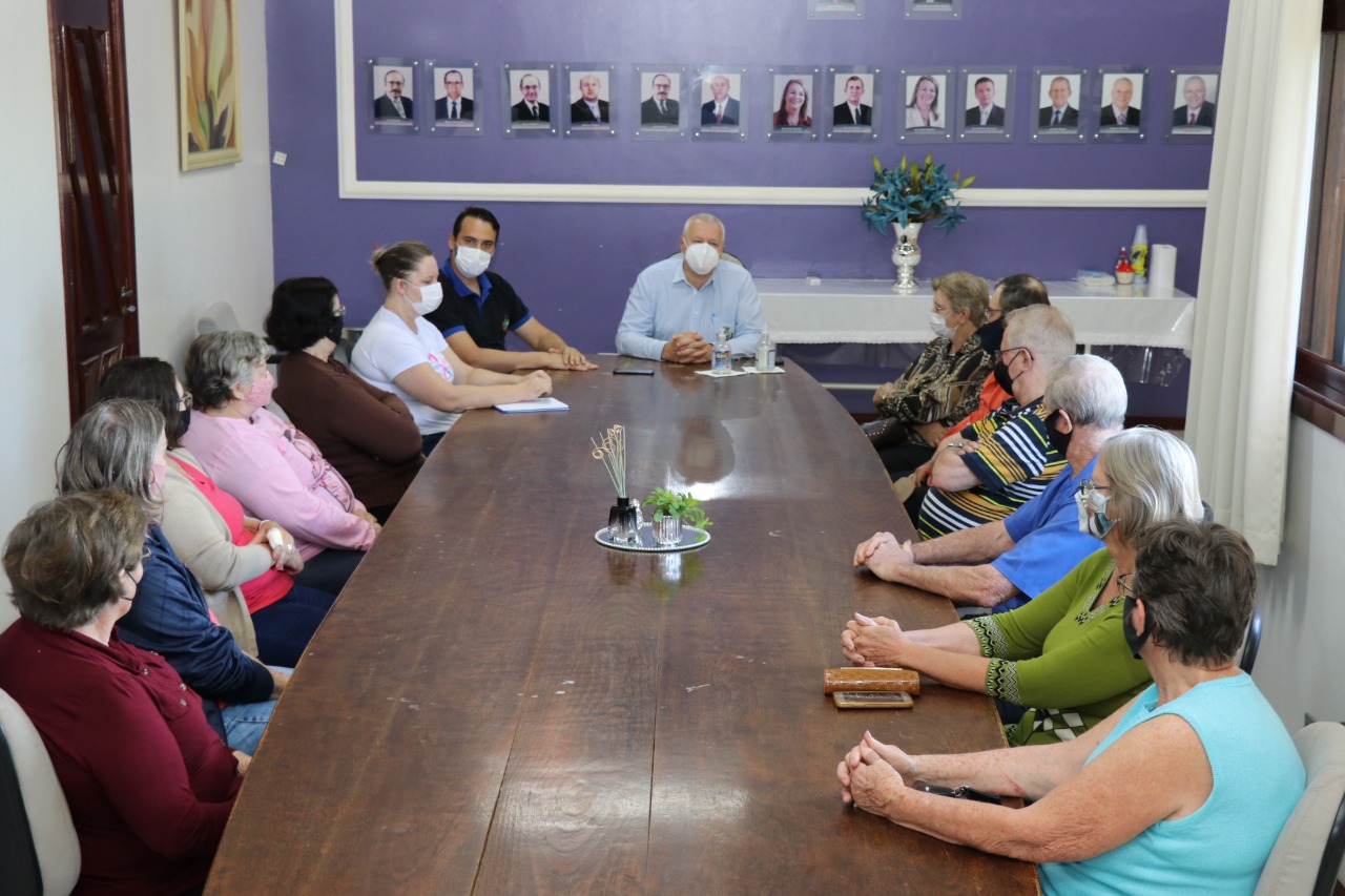 Nesta terça-feira (31) o prefeito Leomar Rohden, o Mano, e o vice John Nodari, promoveram encontros com representantes do Clube de Idosos Felicidade e dos Clubes de Mães.