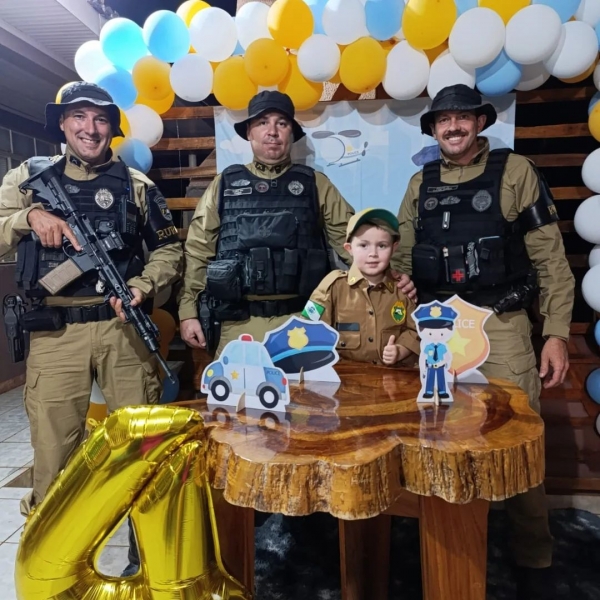 No último sábado, 9 de novembro, policiais militares da Patrulha Rural da 2ª Companhia participaram da festa de aniversário de Patrick, um menino morador da linha Sanga Tupi, interior de Mercedes, que admira a Polícia Militar do Paraná.