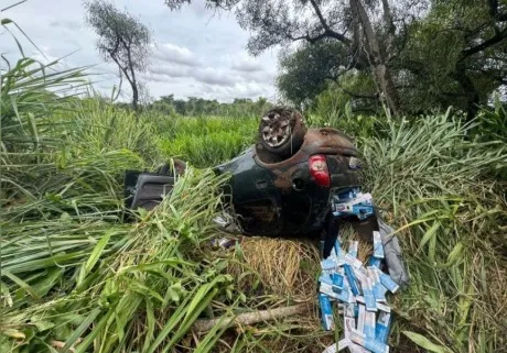 O veículo ficou destruído devido ao capotamento e, com a carga de cigarros, foi encaminhado à Receita Federal de Guaíra para os procedimentos de praxe.