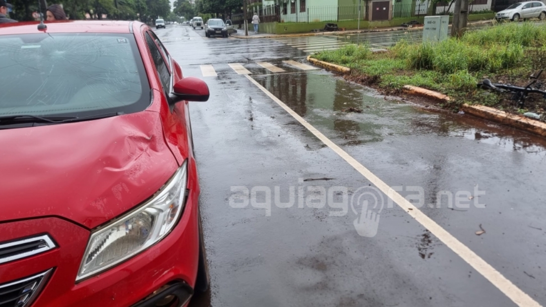 Um acidente de trânsito foi registrado no início da tarde desta segunda-feira (27) no cruzamento das ruas Colombo e Paraná, no centro de Marechal Cândido Rondon.