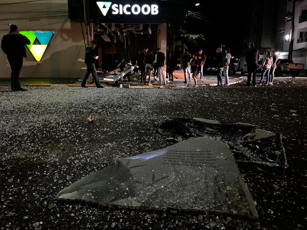 A agência Bancária do Sicoob de Nova Santa Rosa foi alvo de três elementos na madrugada desta sexta-feira, segundo o que informou um popular, primeiramente dois tiros foram disparados no portal principal de entrada, minutos após duas explosões foram ouvidas que deixaram a agência totalmente destruída.