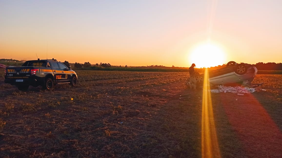 Em certo momento, já na BR 163, sentido Guaíra/PR, o condutor acessou uma área de lavoura às margens da rodovia, perdendo o controle do veículo e capotando diversas vezes. O motorista, que não utilizava cinto de segurança, foi projetado para fora do veiculo e encontra-se hospitalizado, devendo ser encaminhado a prisão após liberação médica.