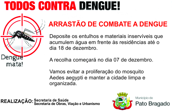 O arrastão contra a dengue em Pato Bragado encerra no dia 18 de dezembro.