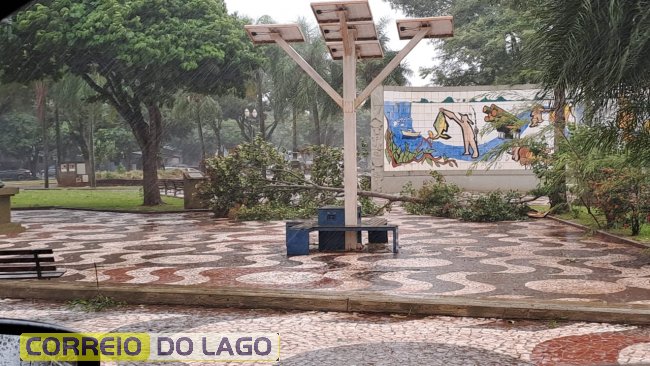 Fortes rajadas de vento e chuva atingiram Santa Helena e municípios da região na manhã desta quinta-feira (21). O vendaval causou a queda de árvores em diversos pontos da cidade, incluindo a rua Paraguai e a Praça Central.