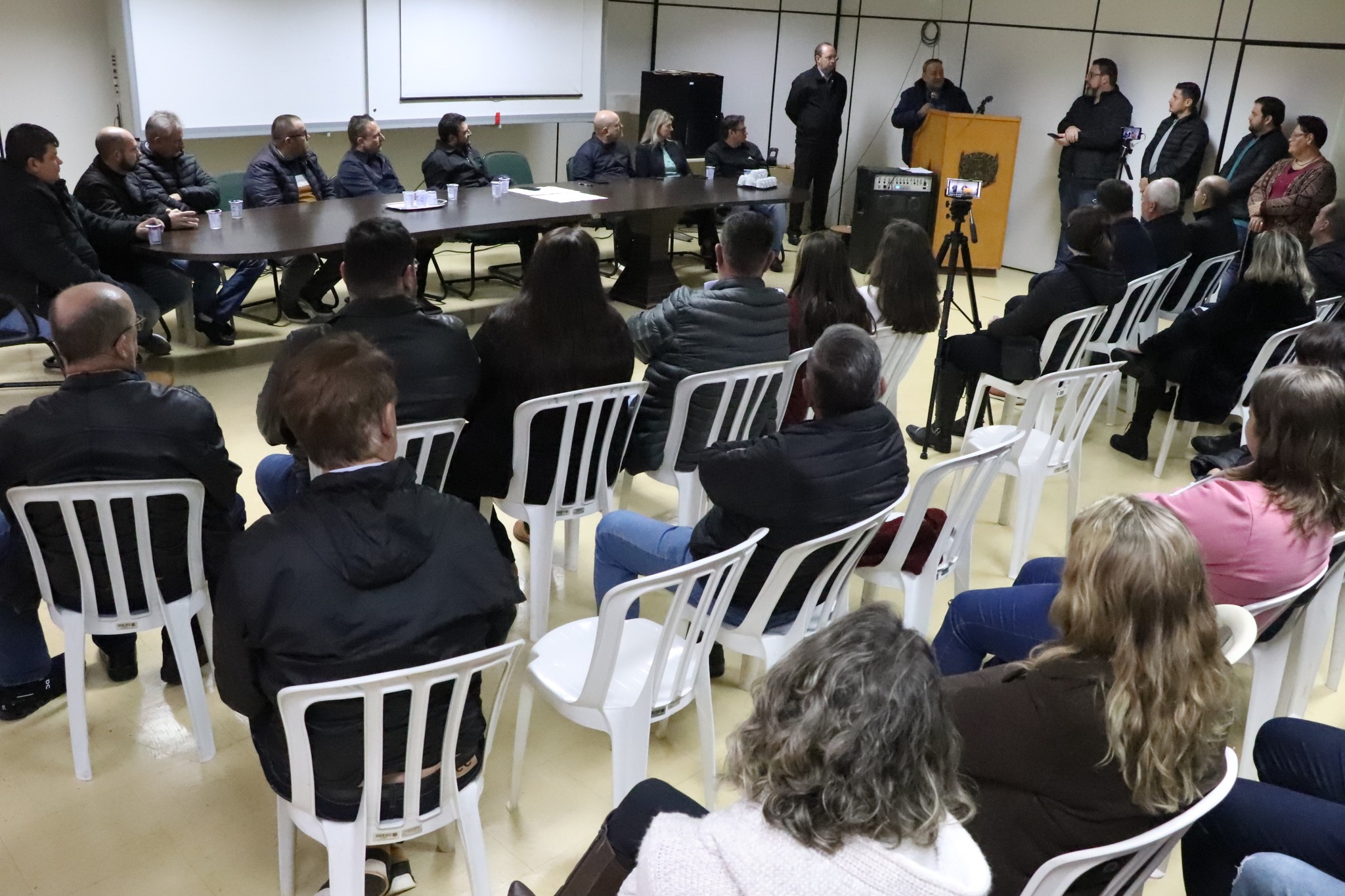 Autoridades municipais, entre eles o prefeito Adriano Backes, o vice-prefeito Vanderlei Sauer, vereadores e secretários municipais, recepcionaram, na manhã desta quinta-feira, dia 26, no auditório da prefeitura, o deputado estadual e líder do governo na Assembleia Legislativa, Hussein Bakri, juntamente com assessores. Na oportunidade, Bakri confirmou novos investimentos para o município, que totalizam quase R$ 40 milhões.