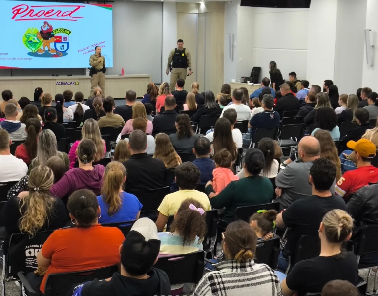 Na noite desta quinta-feira (14), a Associação Comercial e Empresarial de Marechal Cândido Rondon (Acimacar) sediou a aula inaugural das turmas do segundo semestre do Programa Educacional de Resistência às Drogas e à Violência (Proerd). O evento contou com a presença de autoridades políticas e militares, além de pais, alunos e representantes das escolas participantes.