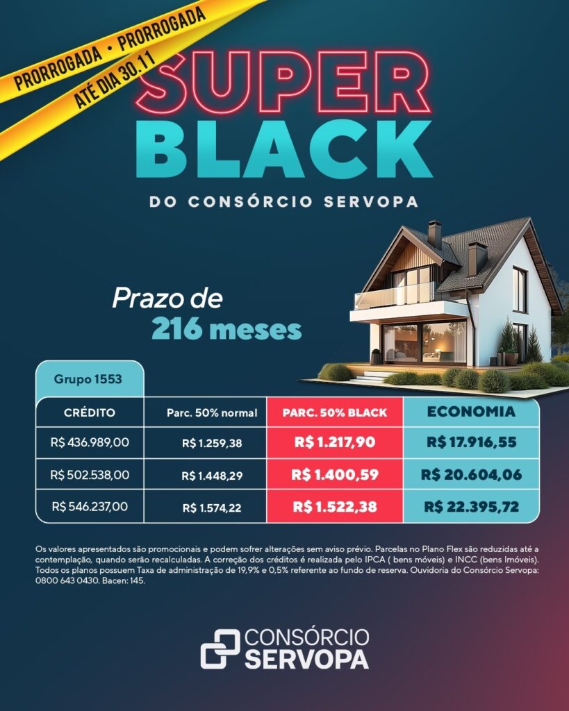 Consórcio Servopa prorroga campanha “Super Black” com descontos especiais até 30 de novembro