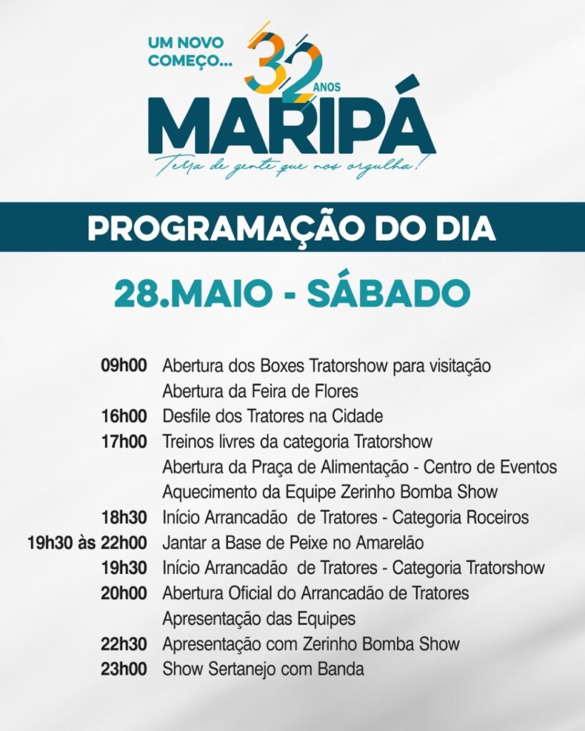 Maripá, 32 Anos: Confira a programação deste sábado (28)
