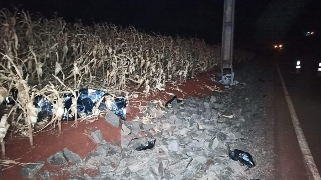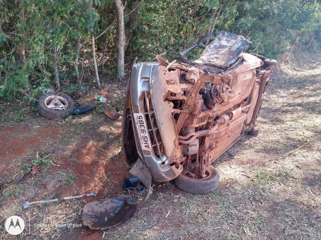 Veículo capota e fica destruído próximo a Porto Mendes