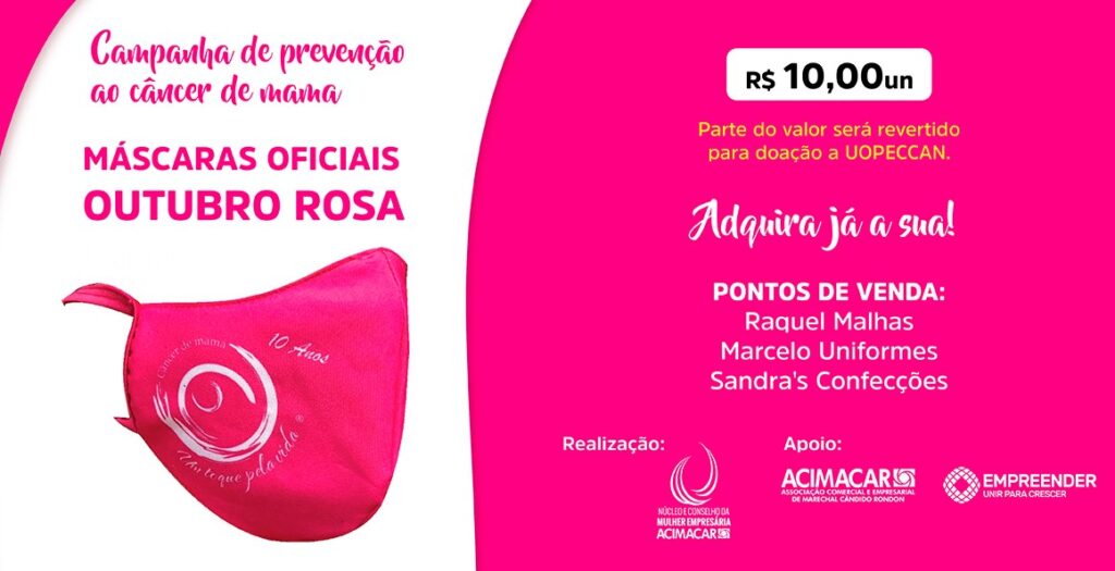 Máscaras oficiais do Outubro Rosa podem ser adquiridas em três pontos de venda