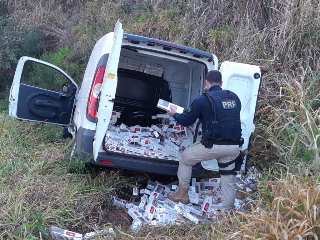 Veiculo carregado com cigarros é abandonado por contrabandistas