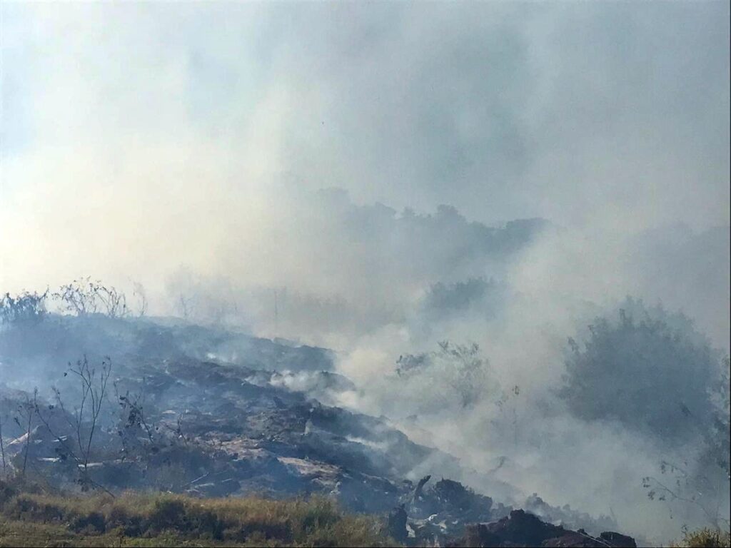 Bombeiros seguem combatendo incêndio em área de três alqueires no Arroio Fundo