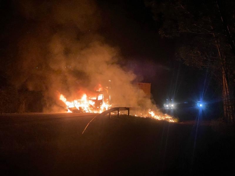 Veículos pegam fogo após acidente na BR-163 próximo a Mercedes