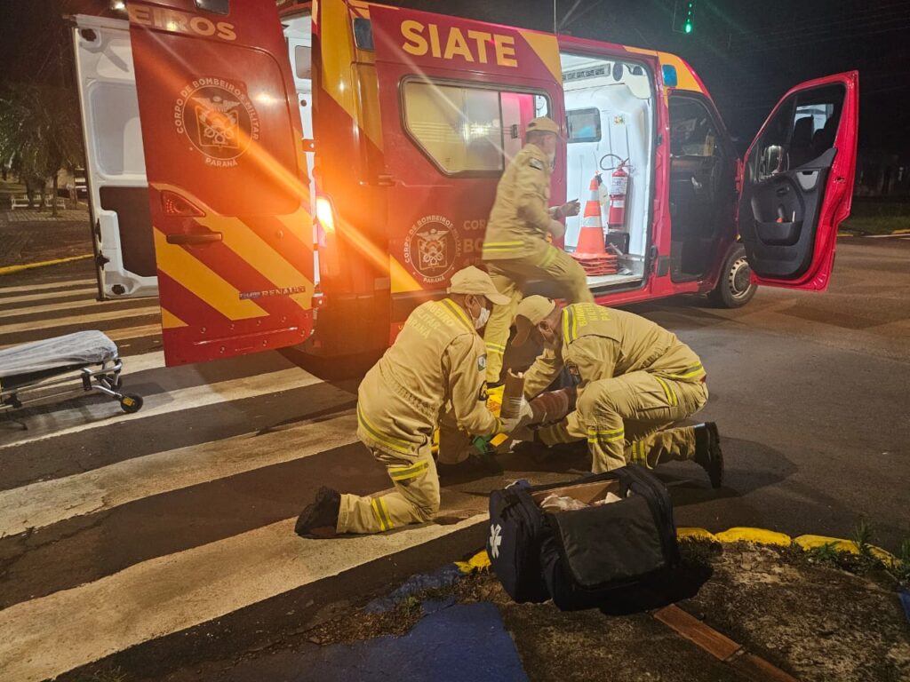 Motociclista avança o sinal, ocasiona acidente e quebra a perna em Toledo.