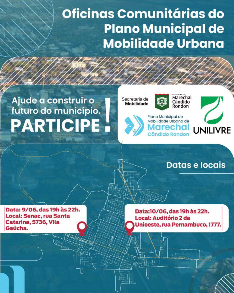 A prefeitura de Marechal Cândido Rondon, por meio da Secretaria de Mobilidade, convida toda a comunidade a participar da primeira rodada de oficinas comunitárias para a elaboração do Plano Municipal de Mobilidade Urbana. De acordo com o secretário de Mobilidade, Marcos Carlton, o objetivo das oficinas é ouvir a população, compreender os principais desafios enfrentados […]