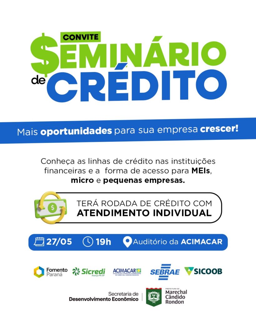 Seminário de Crédito acontece no próximo dia 27
