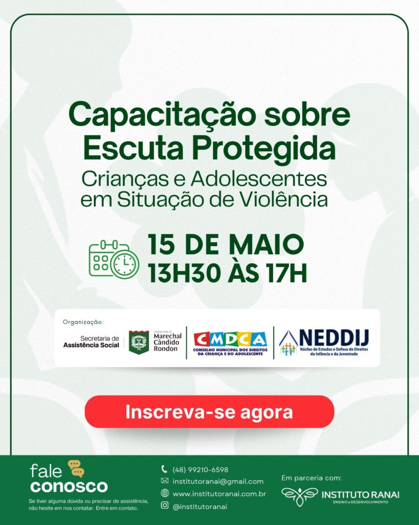 Capacitação sobre “Escuta Protegida de Crianças e Adolescentes em Situação de Violência” acontece nesta quinta-feira em Marechal Cândido Rondon