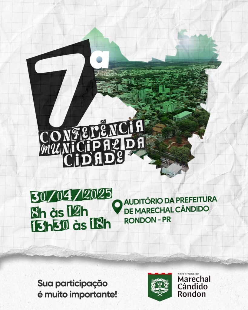 A prefeitura de Marechal Cândido Rondon promove, nesta quarta-feira, dia 30 de abril, a Conferência Municipal da Cidade, um importante momento de diálogo entre o poder público e a sociedade civil sobre os rumos do desenvolvimento urbano local e nacional. O evento acontecerá no auditório da prefeitura, das 8h às 12h e das 13h30 às […]
