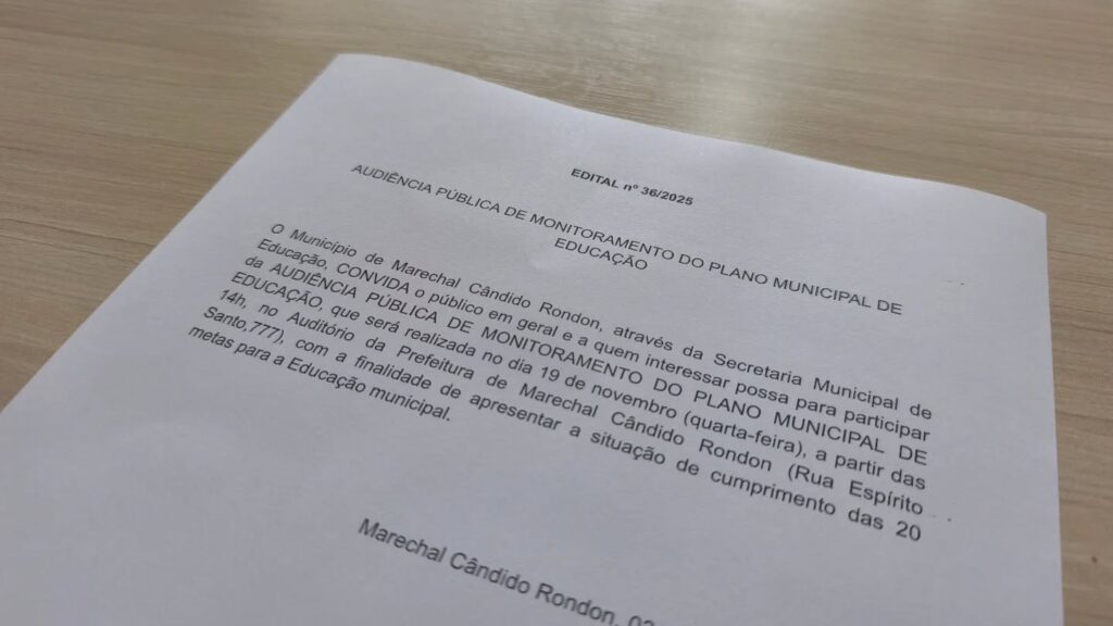 A Secretaria de Educação de Marechal Cândido Rondon convida toda a comunidade para participar da audiência pública de monitoramento do Plano Municipal de Educação, que será realizada na quarta-feira, 19 de novembro, a partir das 14h, no auditório da prefeitura. O encontro tem como objetivo apresentar à população o andamento das 20 metas estabelecidas para […]