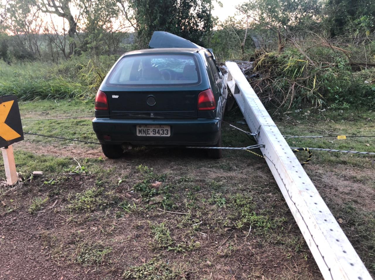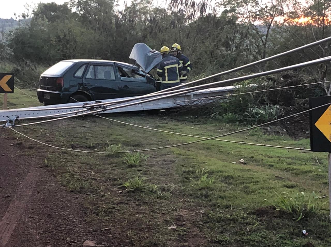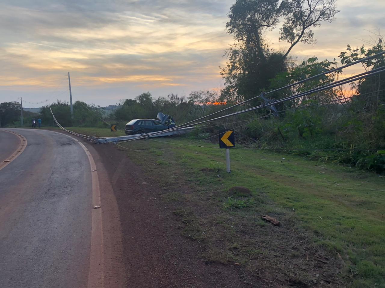 Automóvel Gol bate contra poste na rodovia Marechal Rondon a Vila Curvado