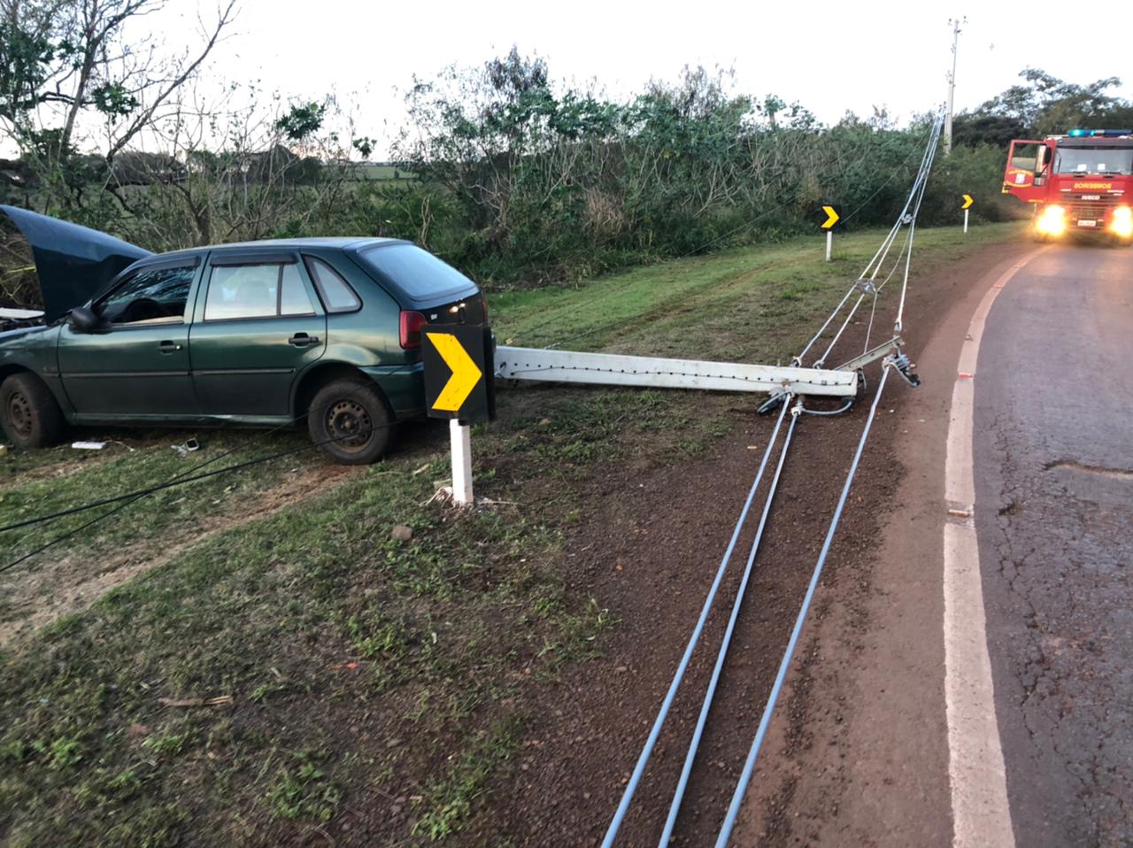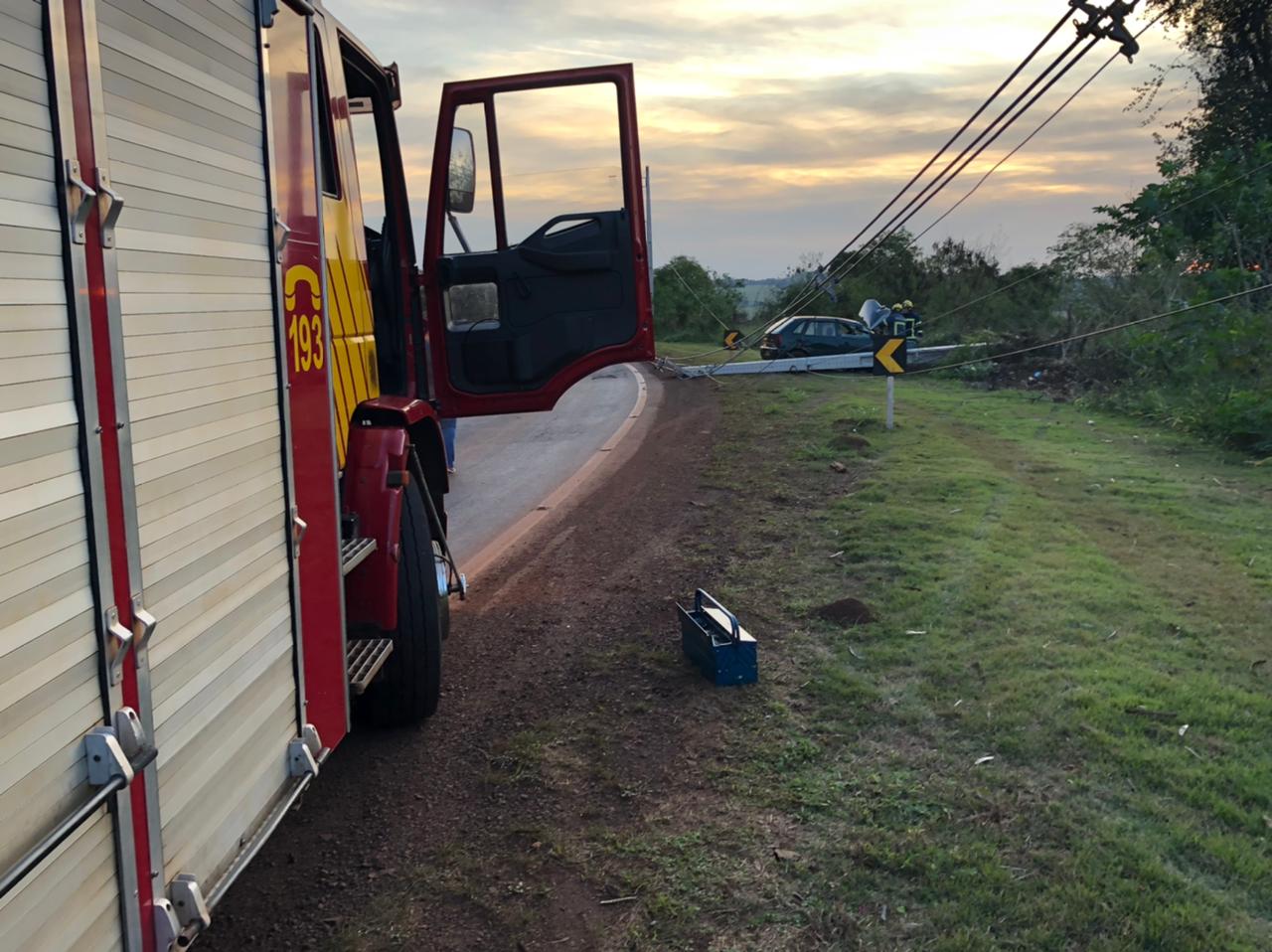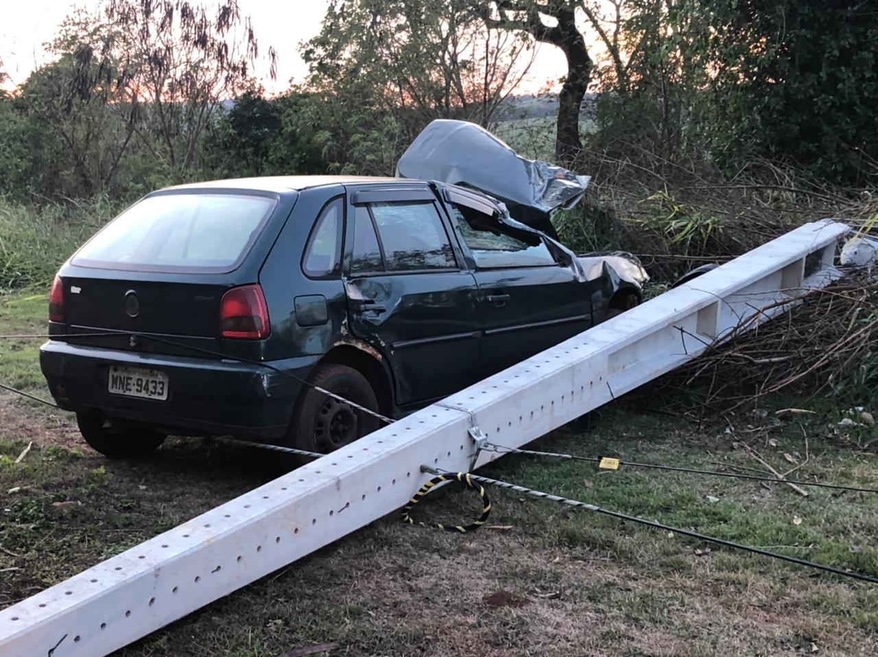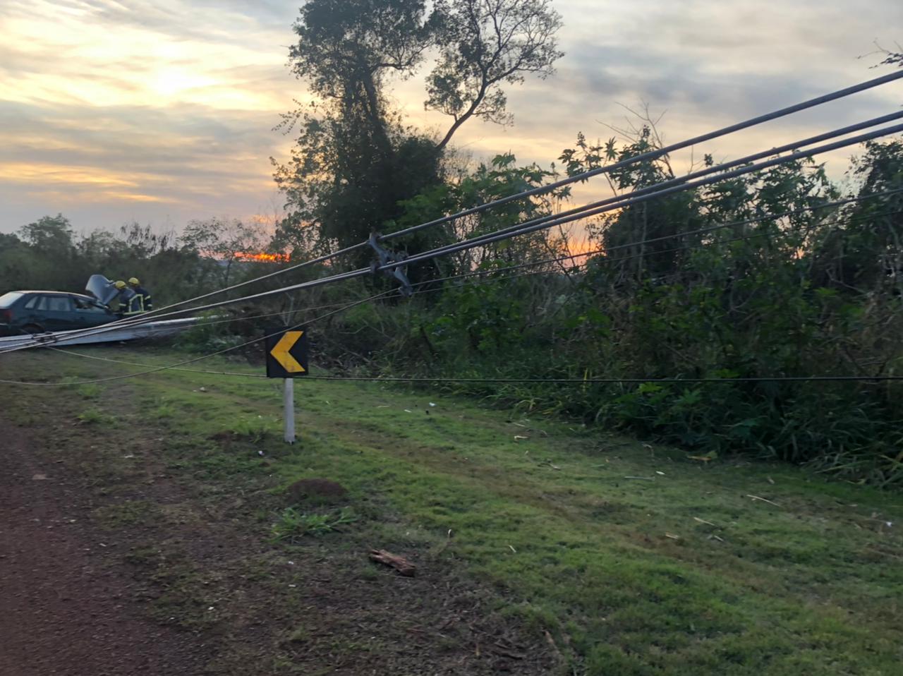 Automóvel Gol bate contra poste na rodovia Marechal Rondon a Vila Curvado