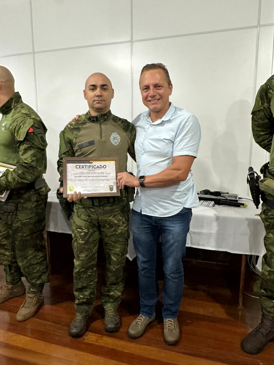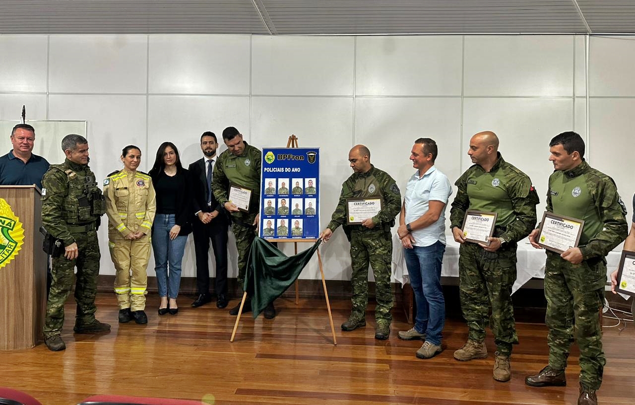 Diversas autoridades prestigiaram nesta terça-feira (10) da solenidade alusiva ao Policial Destaque do Mês, promovida pelo Batalhão de Policia de Fronteira de Marechal Rondon.