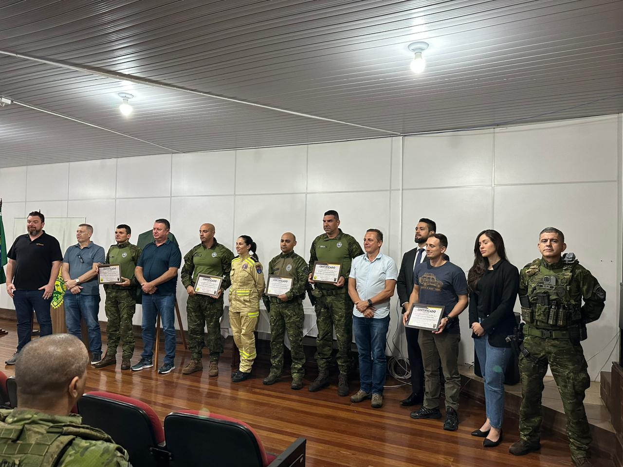 Recepcionados pelo comandante do BPFron, major Divonsir de Oliveira Santos, participaram do evento o promotor de justiça Caio Di Rienzo; a delegada de Policia Civil, Yasmin Espicalsky; a comandante do Quartel dos Bombeiros, Marcela Schwendler; o presidente da Câmara de Vereadores e vice-prefeito eleito Soldado Sauer; o presidente do Conselho Comunitário de Segurança – CONSEG, sargento Carlton; dentre outras autoridades.
