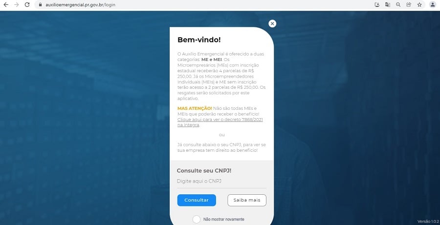 Após realizado o cadastro, o “sócio” da pessoa jurídica deverá entrar no portal do benefício, no endereço www.auxilioemergencial.pr.gov.br ou baixar o aplicativo “Auxílio Emergencial PR” disponível para Android ou iOS. Para localizar o aplicativo nas lojas basta procurar por “Auxílio Emergencial PR”. Até o dia 20 de cada mês, o benefício será disponibilizado para resgate.