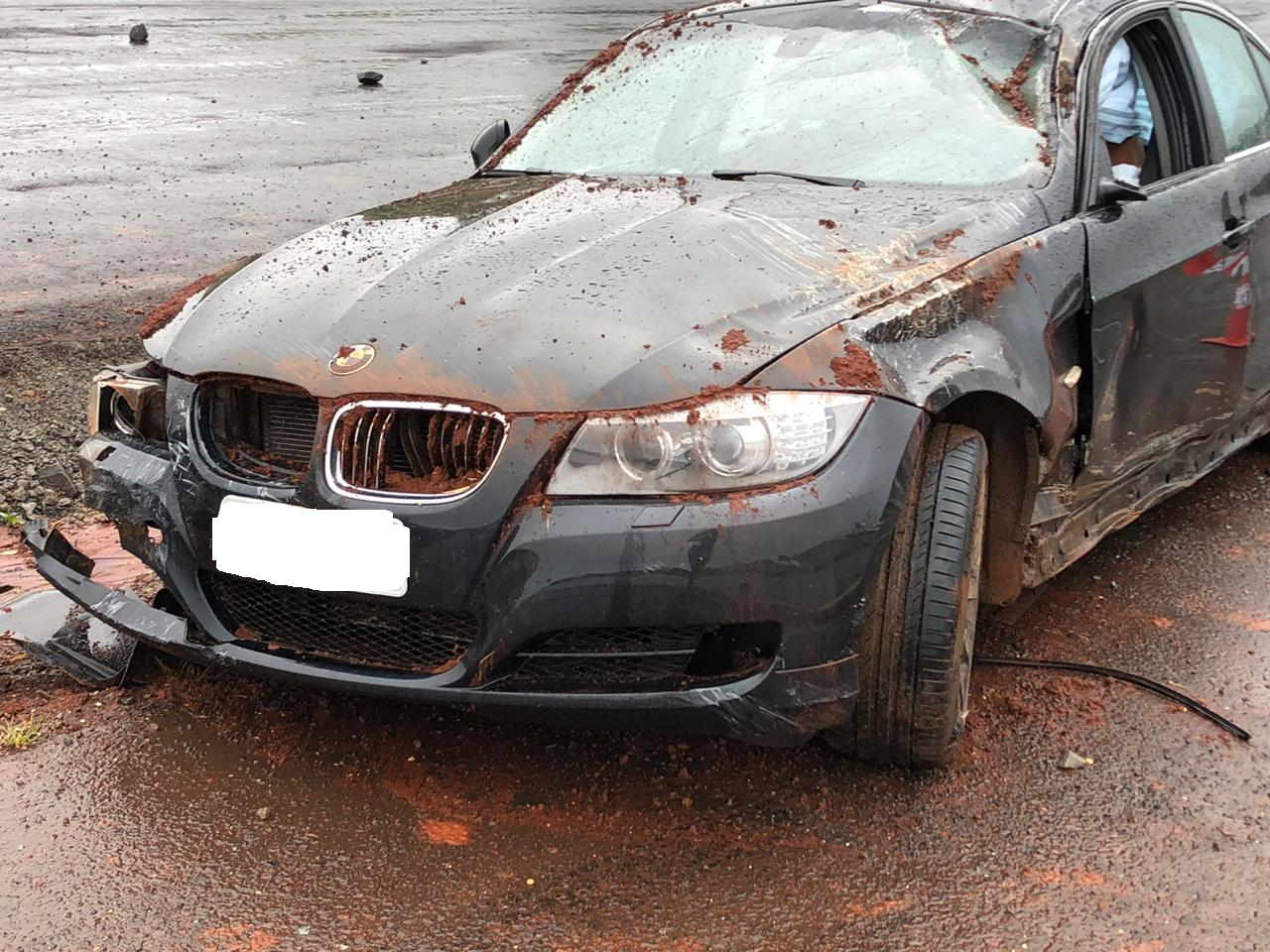 BMW capota na rodovia Marechal Cândido Rondon – Quatro Pontes: condutor fica ferido.