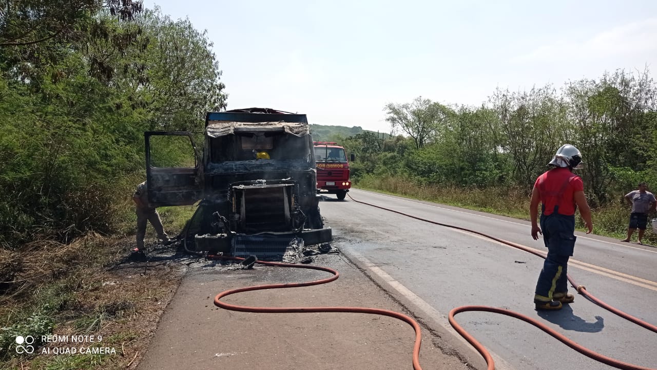 O condutor não se feriu e as causas do fogo ainda não foram apuradas.