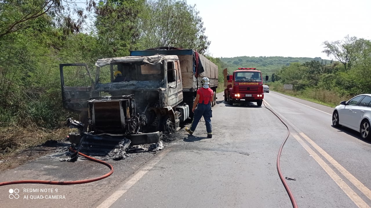 Incêndio a veículo foi registrado na tarde deste sábado (19) na Br-163 trecho entre Mercedes e Guaira.