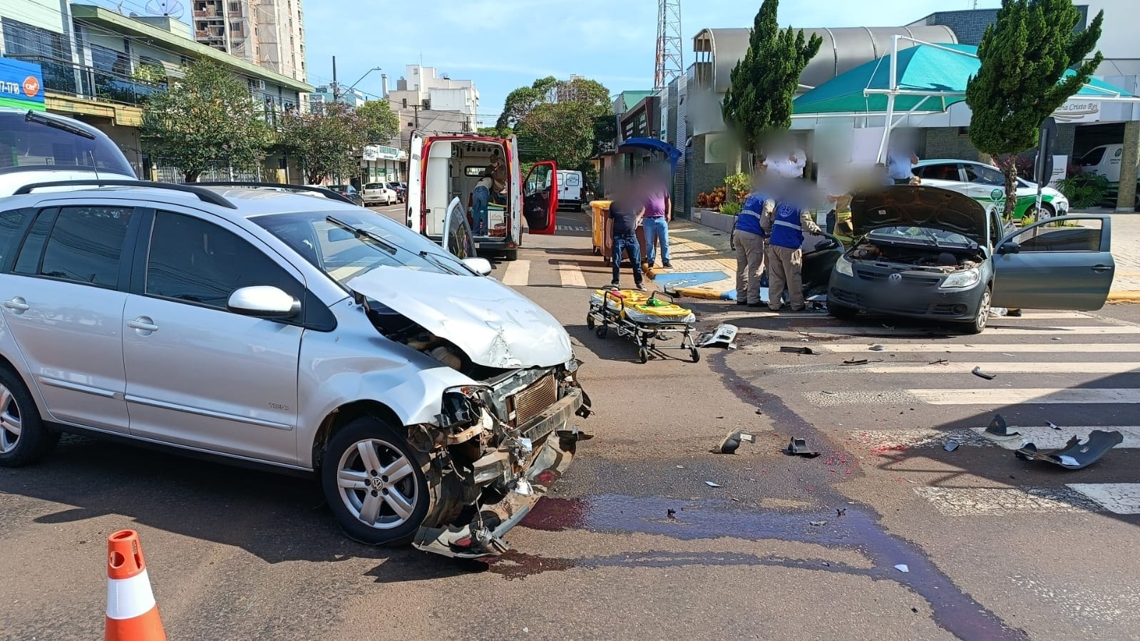 Uma colisão entre dois veículos provocou transtornos no Centro de Toledo na manhã desta sexta-feira (28), deixando duas pessoas feridas e exigindo a intervenção do Corpo de Bombeiros para socorrer uma passageira presa nas ferragens.