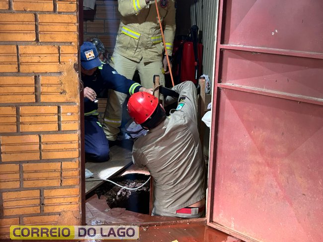 Segundo informações apuradas no local, a vítima transitava por uma área que aparentava ser um espaço de serviço quando o piso cedeu inesperadamente, abrindo o buraco e provocando a queda. Por sorte, familiares estavam presentes na residência no momento do acidente, o que permitiu o acionamento rápido dos serviços de emergência.