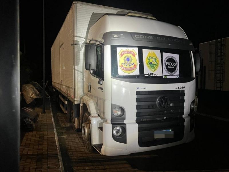 Policiais do Batalhão de Fronteira e da FICCO/PR (Força Integrada de Combate ao Crime Organizado do Paraná), durante patrulhamento pelo interior de Mercedes nesta quinta-feira (24) realizaram a apreensão de um caminhão furgão Volkswagen/24-280 CRM 6×2, carregado com aproximadamente 600 caixas de cigarros contrabandeados, que após contabilizados somaram 30 mil pacotes.