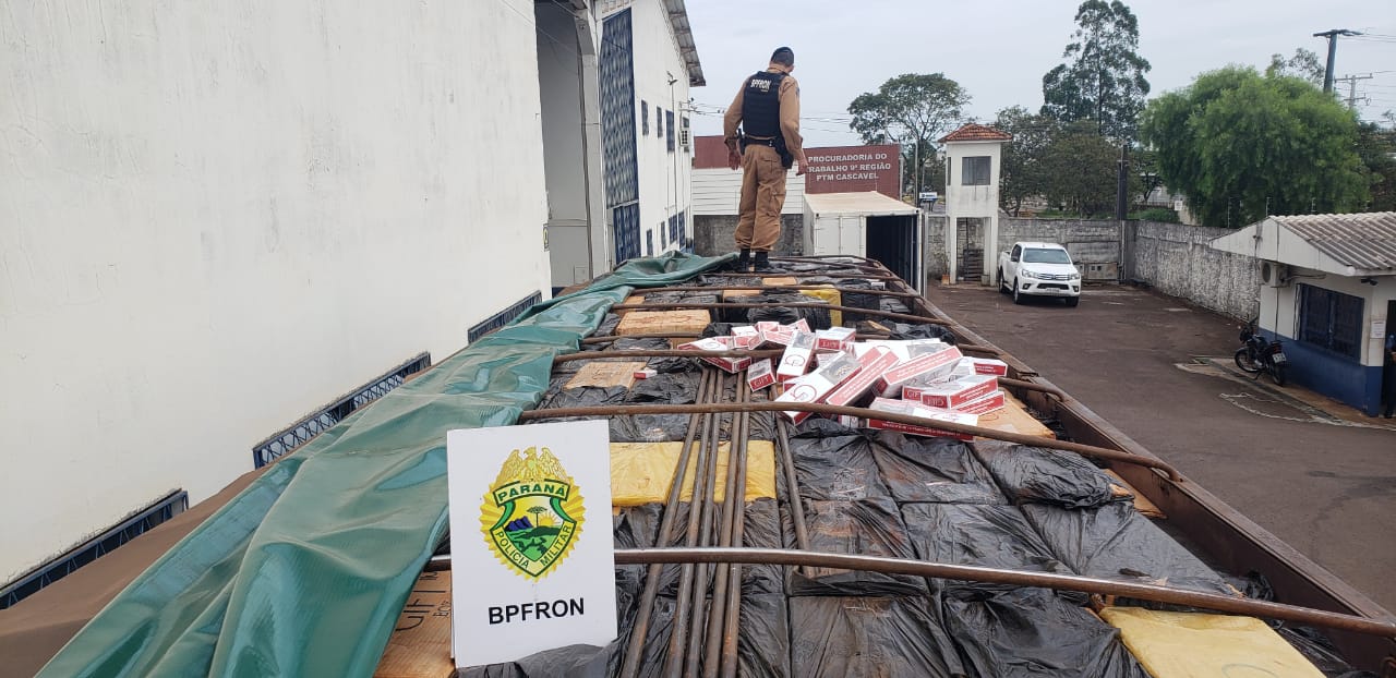 Em outra abordagem no patrulhamento, próximo ao município de Ouro Verde do Oeste-PR, a equipe percebeu que uma carreta havia adentrado a uma estrada vicinal. Os Policiais Militares realizaram abordagem ao carreta e em revista, foram encontradas cerca de 1000 caixas de cigarros contrabandeados do Paraguai, sendo dada voz de prisão ao condutor. Os veículos e as mercadorias foram encaminhados para a Receita Federal do Brasil e o preso foi conduzido a Polícia Federal.