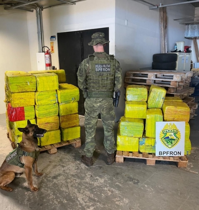 Uma equipe do Pelotão de Operações com Cães do Batalhão de Polícia de Fronteira e operação integrada com outras forças de segurança e durante patrulhamento no interior de Marechal Cândido Rondon, localizou numa área de mata vários fardos de maconha que após pesagem totalizaram 1.424 quilos da droga.