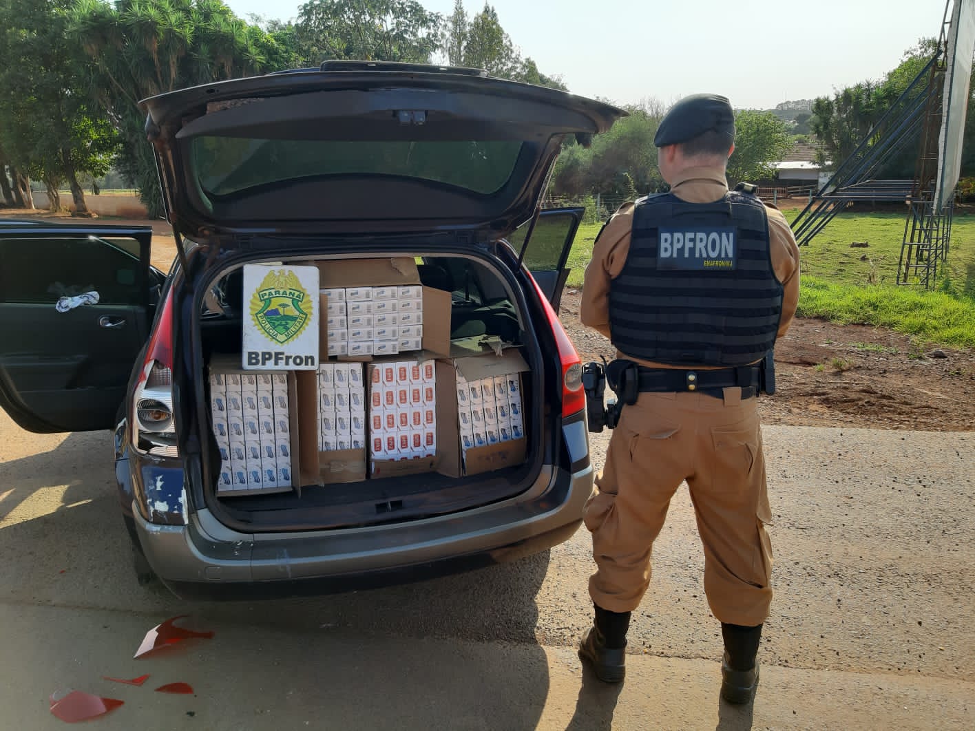 Diante dos fatos o veículo e o contrabando foram apreendidos e entregues na Receita Federal do Brasil em Guaíra-PR para procedimentos cabíveis.