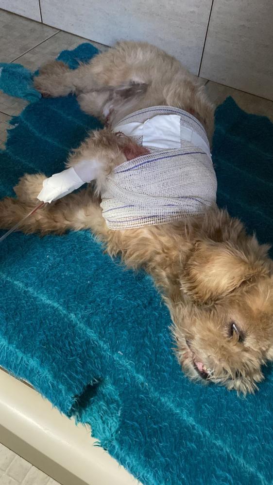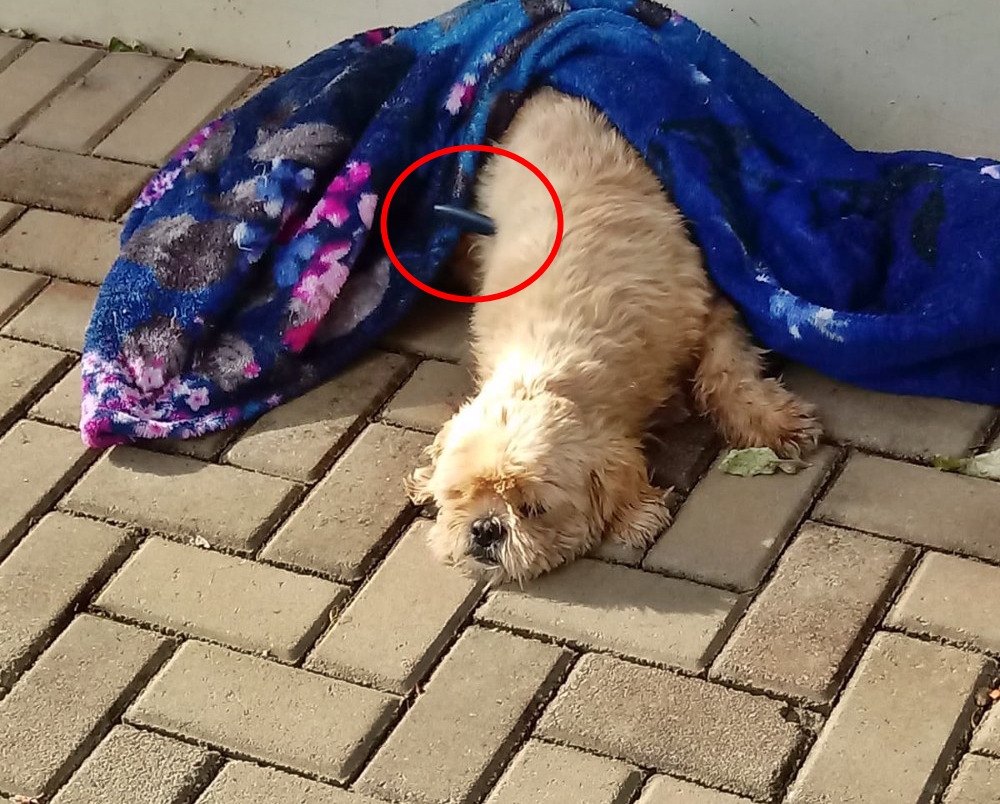 O objeto cortante foi removido e por sorte, não perfurou nenhum órgão do cachorro, que segue internado.