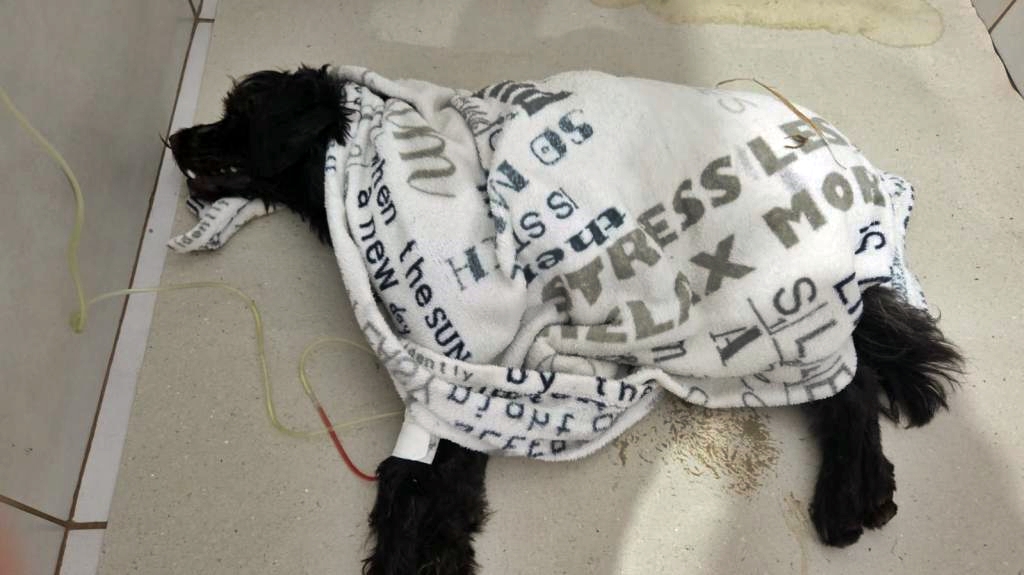Voluntária da OPA resgatou cachorro agonizando em frente à prefeitura; gato também foi encontrado morto em situação suspeita