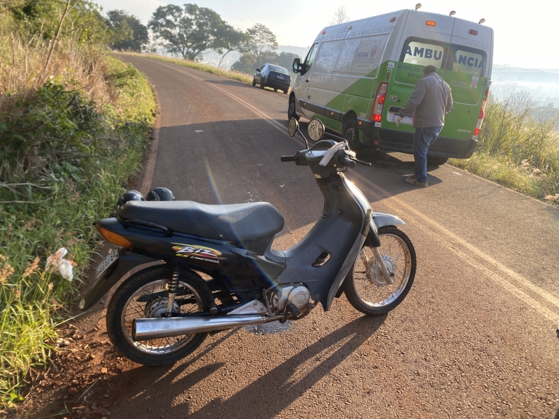 O acidente envolveu uma moto Honda Biz, na estrada da comunidade Beira Rio.