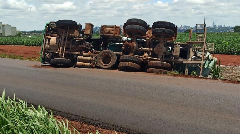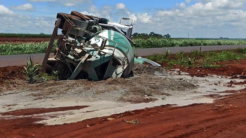 Caminhão betoneira carregado de concreto tomba em Toledo